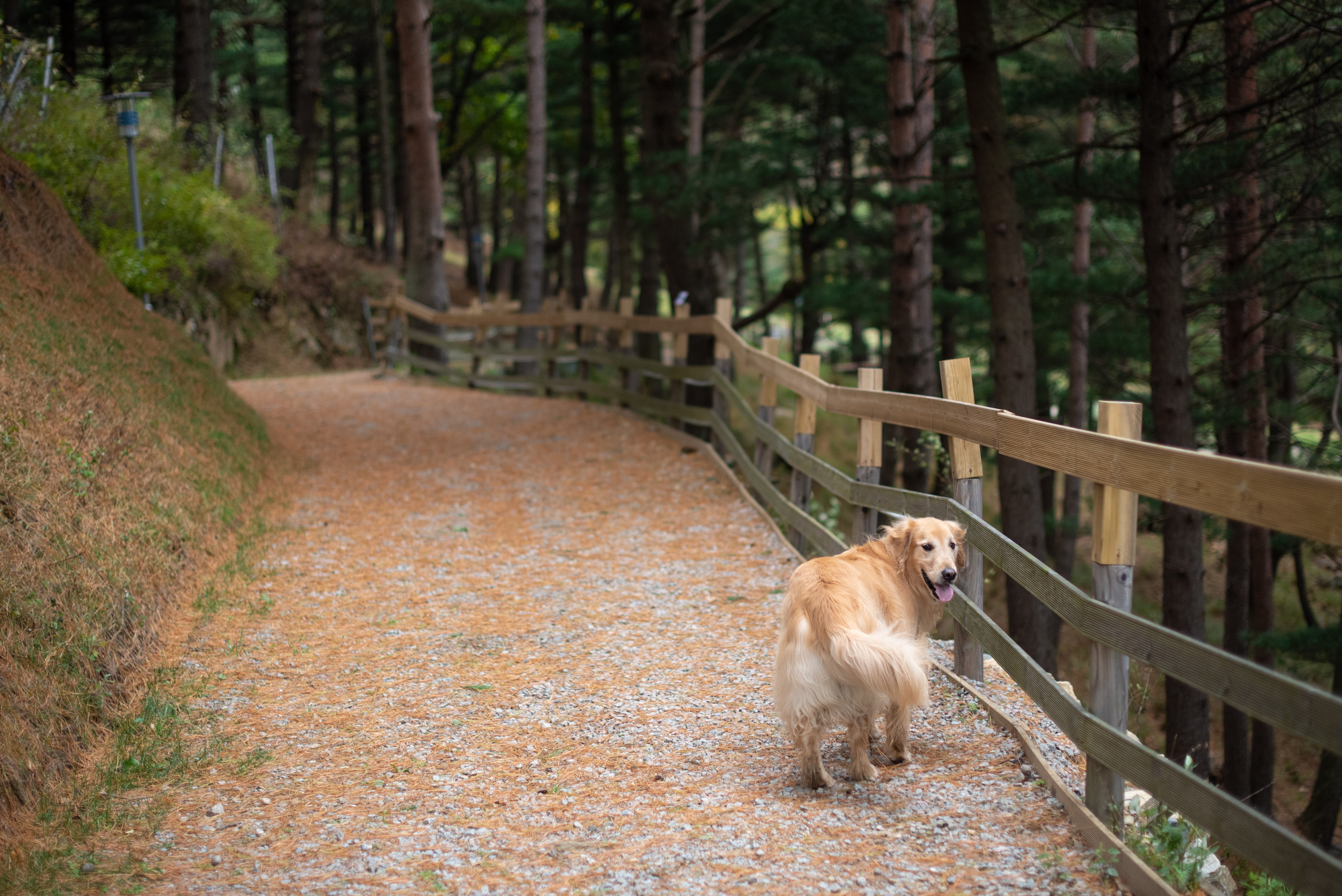 양몰이를 끝내고 산책로를 따라 걷는 마이찬.
