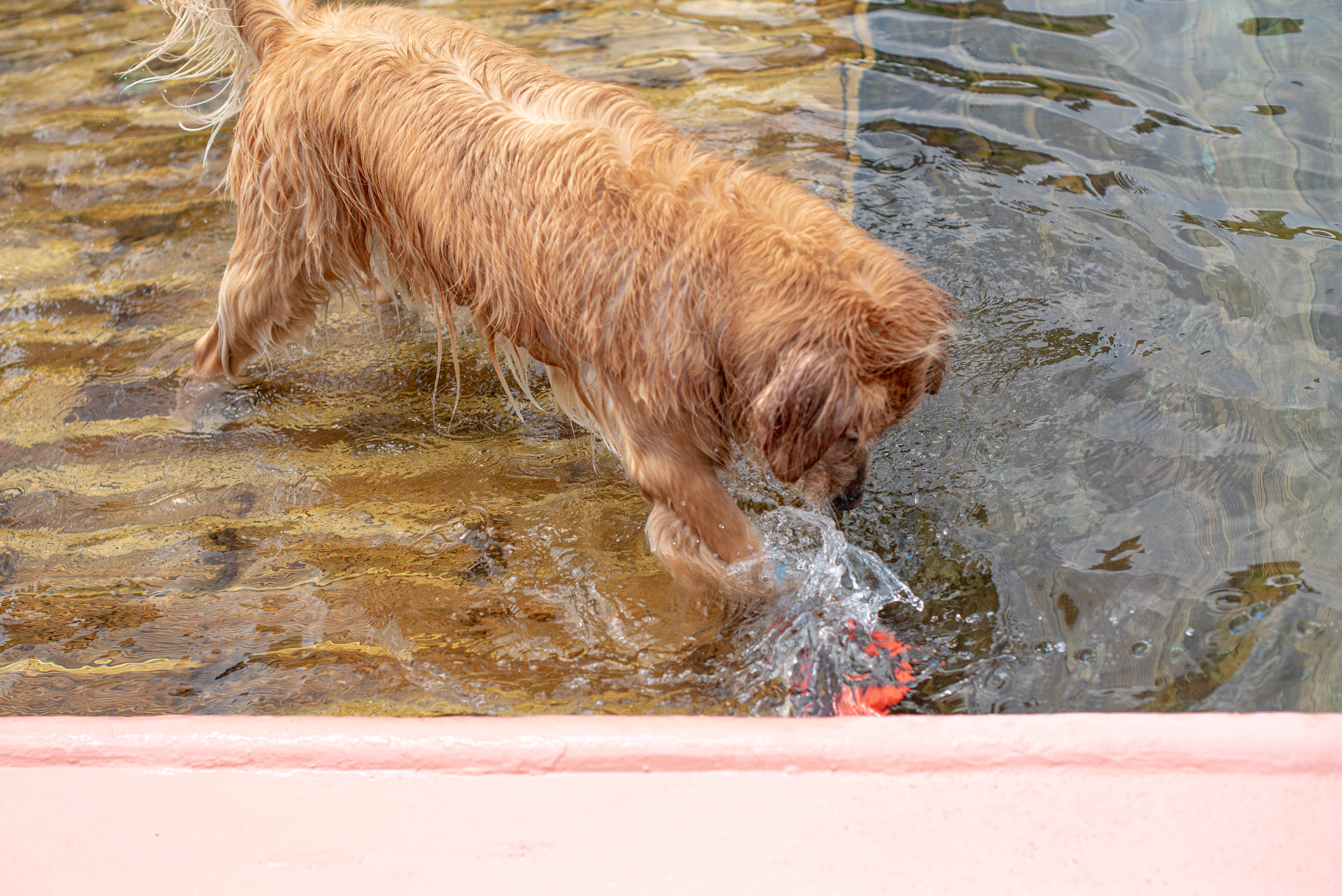 공을 던져주자 유유자적 수영을 하며 돌아오는 마이찬.