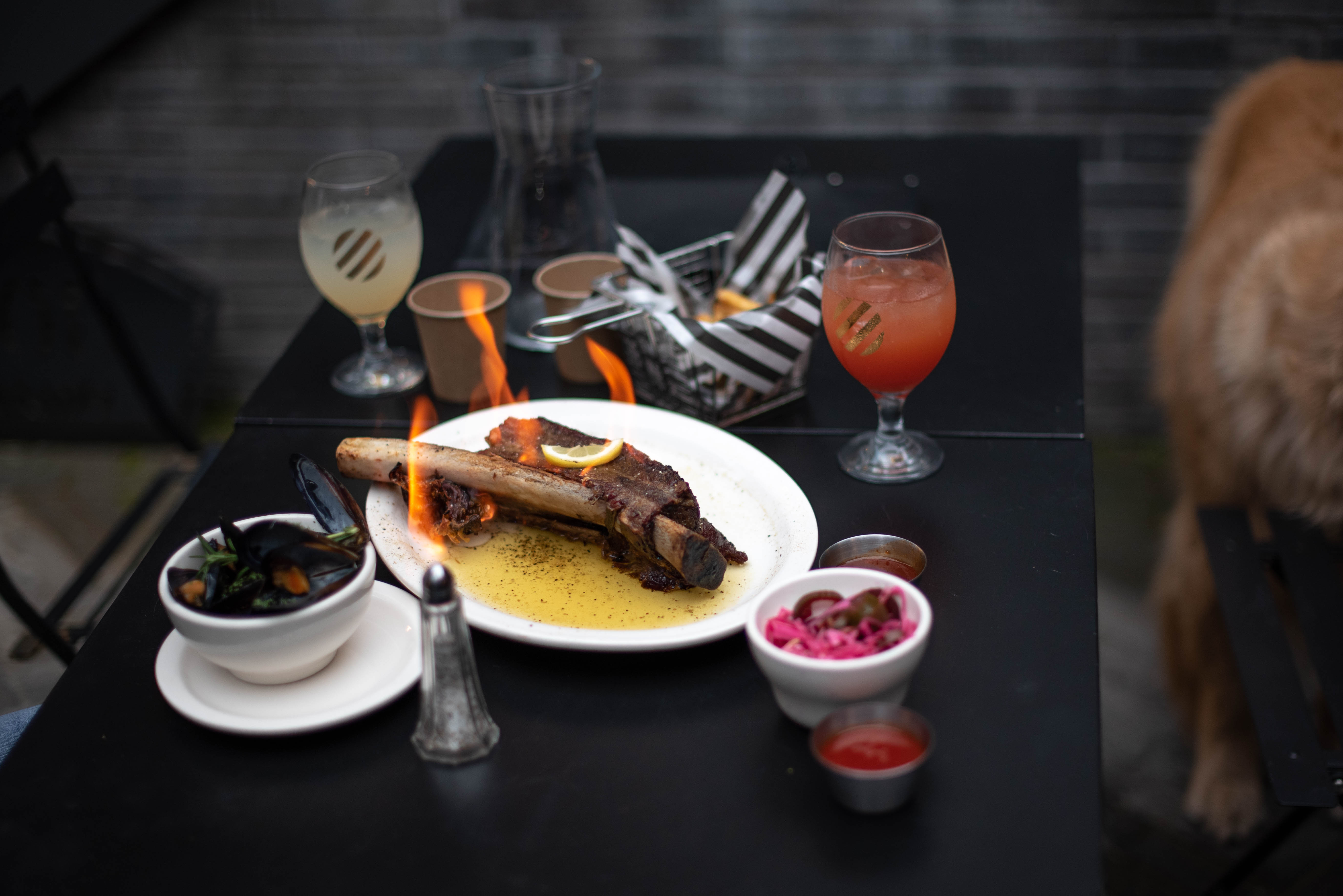 스테이크에 불이 붙고 냄새도 맛나 보이고 입에는 침이 고이네요.